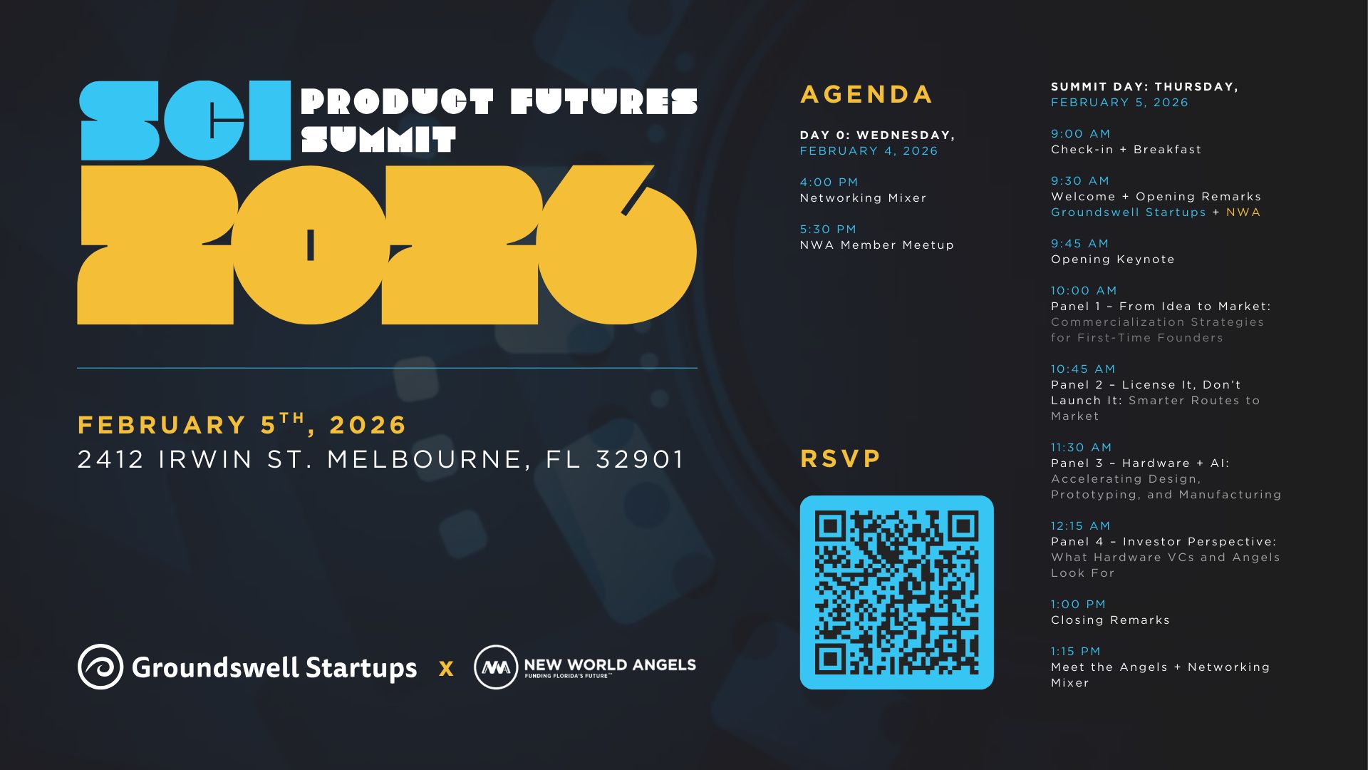 In early 2025, we launched the Space Coast Initiative (SCI) to unify and amplify the region’s startup, innovation, and STEM-focused efforts. We’re excited to introduce the first flagship event under this banner for 2026: Product Futures Summit.
